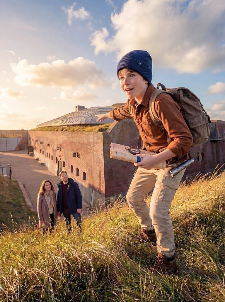 Deze kerstvakantie zijn kinderen de ontdekkers! Met een kompas in de hand leiden zij hun familie door mysterieuze gangen, verborgen hoeken en de onderwaterwereld van Fort Kijkduin.